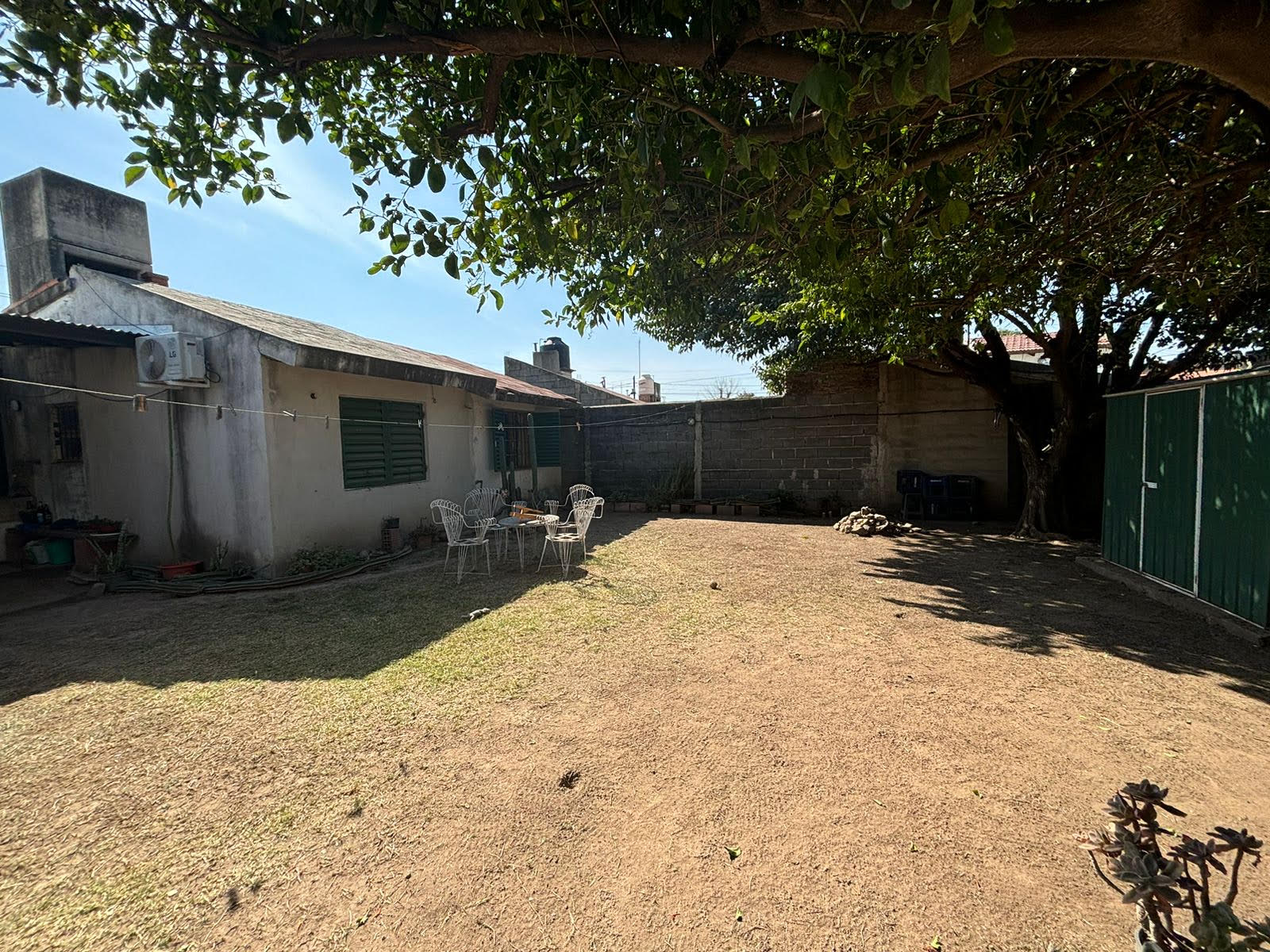Dos dormitorios (uno muy amplio), otro con placard cocina comedor, baño y patio grande. Tiene cochera amplia y taller. Precio usd 60.000